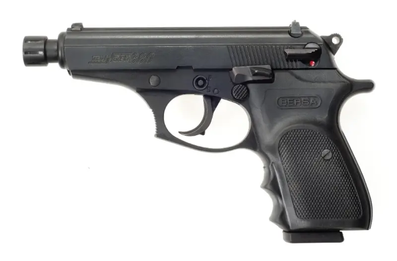 $281.00Bersa BP9MCCX BPCC Sub-Compact Frame 9mm Luger 8+1, 3.30″ Black Steel Threaded Barrel, Matte Black Serrated Steel Slide & Polymer Frame w/Picatinny Rail