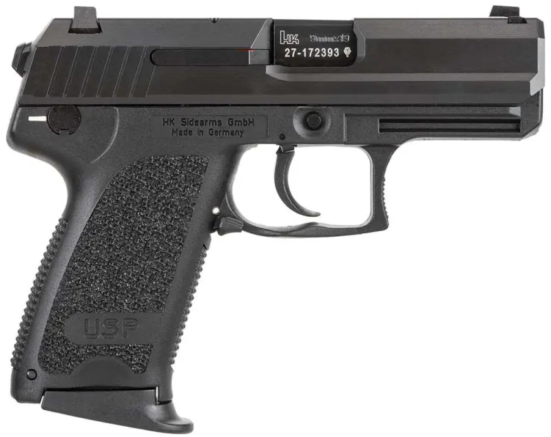 $1,124.00HK 81000333 USP V7 LEM Compact 9mm Luger 13+1 3.58″ Black Polygonal Rifled Barrel, Black Serrated Slide, Black Polymer Frame, Black Polymer Grip, Ambidextrous