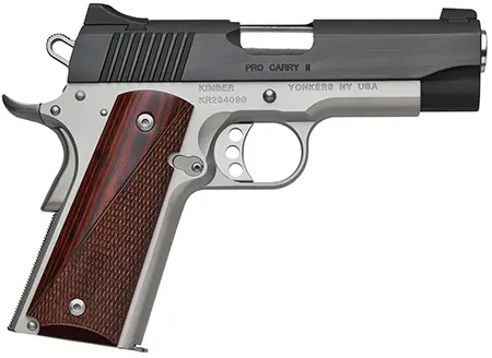 $757.00Kimber Mfg.,inc 3200320 Pro Carry II Two-Tone 45 ACP 7+1 4″ Matte black Brush-Polished Stainless Steel Slide Satin Silver Smooth/Checkered Rosewood Grip