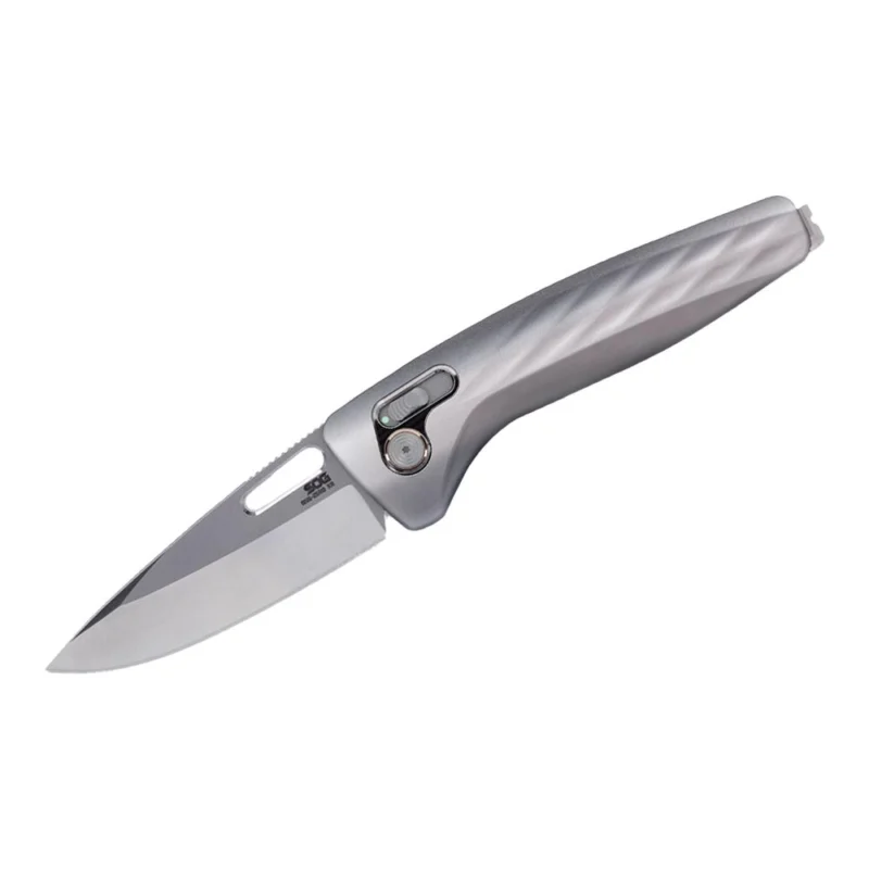 $11.00SOG Knives One-Zero XR Folding Knife 3-1/10″ Drop Point Blade Silver Black Box