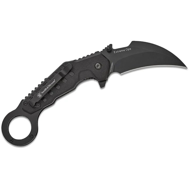 $19.00Smith & Wesson Extreme Ops Karambit Assisted Folding Knife 3″ Hawkbill Blade Black
