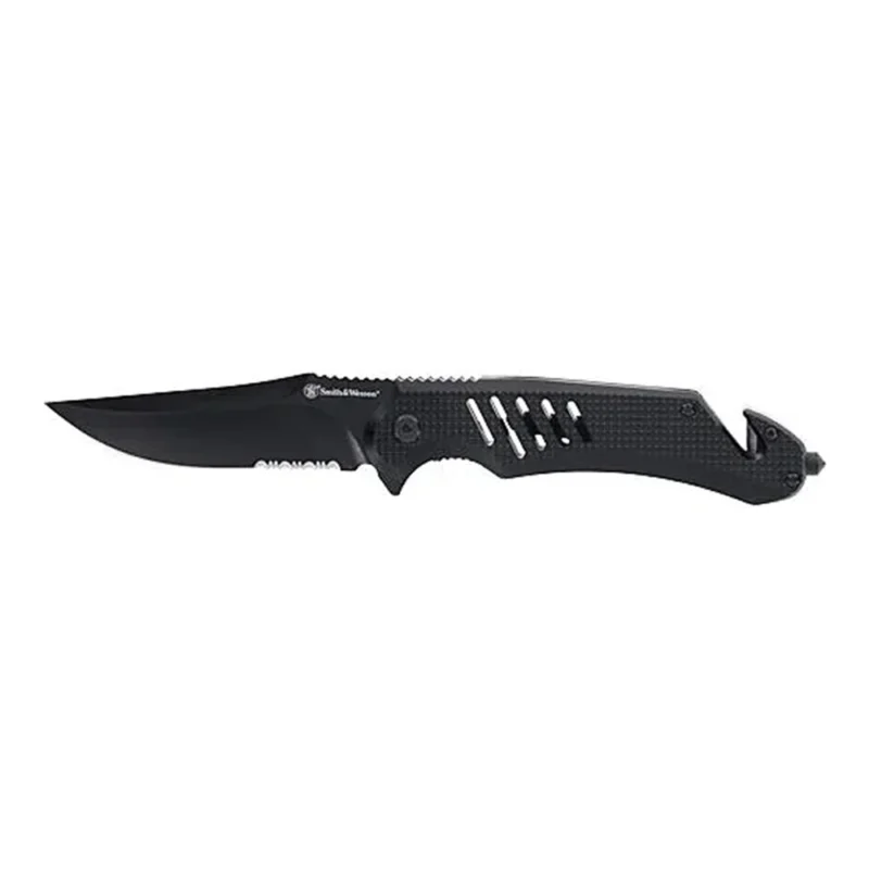 $13.00Smith & Wesson Extreme Ops Folding Knife 3-1/2″ Clip Point Blade Black with Glass Breaker and Strap Cutter
