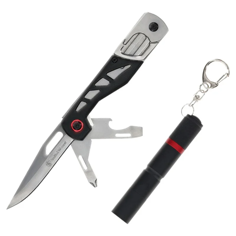 $23.00Smith & Wesson Multitool Folding Knife 3″ Drop Point Blade Black with Light