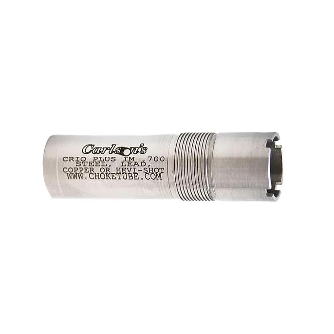 Carlson's new line of steel shot choke tubes pattern steel shot extremely well. These choke tubes feature a longer parallel section allowing for less flyers and denser patterns. These choke tubes extend 3/4 " outside the barrel eliminating damage to your barrel caused by prolonged steel shot use. The longer parallel section allows for use of larger steel shot in tighter choke constrictions. They are made of 17-4 stainless with a knurled extension and a blue finish. Each choke tube carries a lifetime warranty. All steel shot sizes may be used in the close and mid-range choke tubes. Do not use steel faster than 1550 FPS or steel shot sizes larger than BB through the Long Range choke tube.