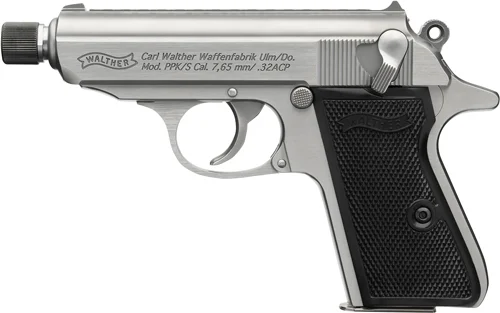 WALTHER PPK/S SD 32ACP FS 7RD – STAINLESS BLACK GRIPS